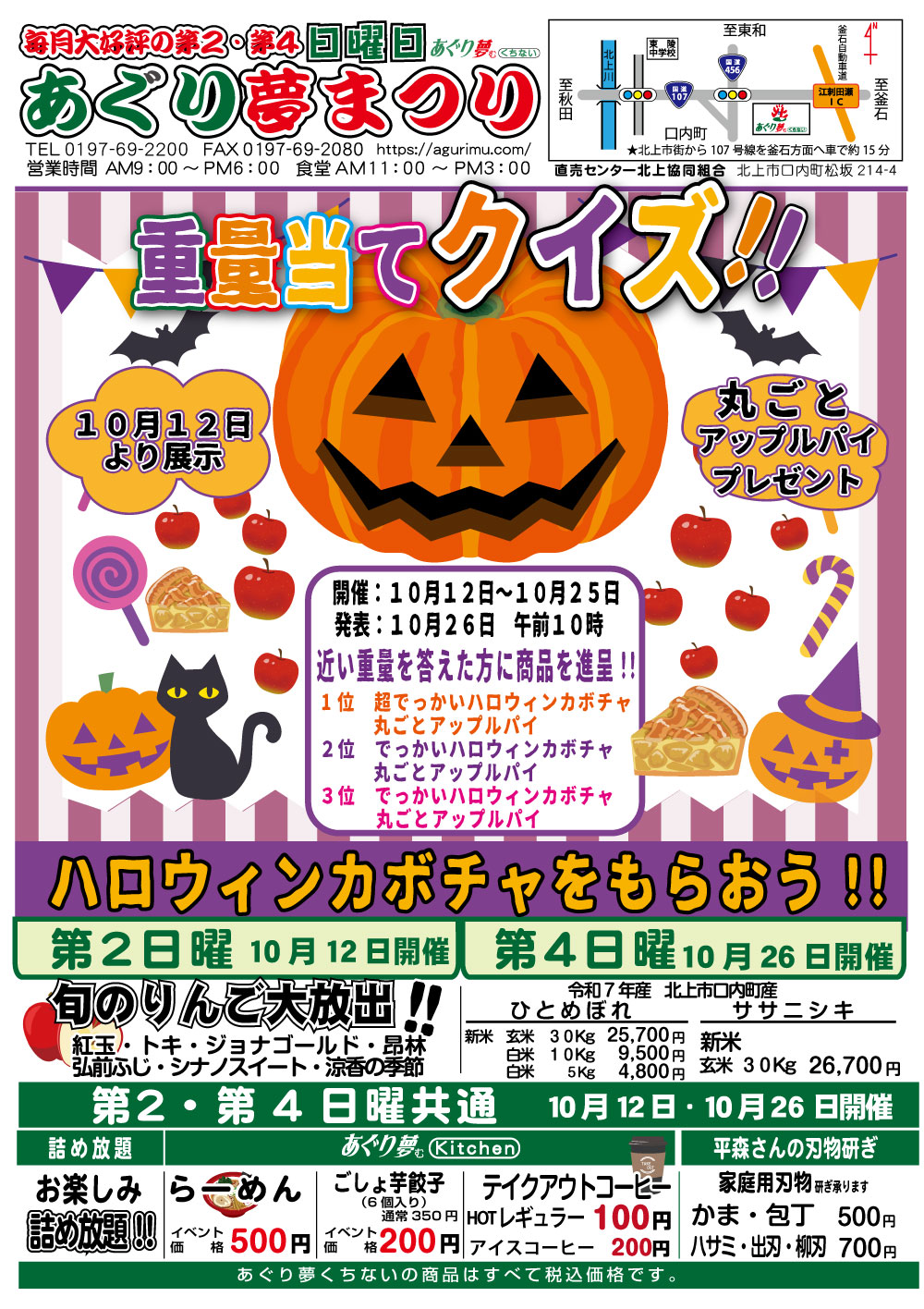 Slide OneSlide ThreeSlide Two 夏季営業時間(4月1日~11月30日) AM9:00~PM6:00 冬季営業時間(12月1日~3月31日) AM9:00~PM5:30 最新のチラシ 過去のチラシ一覧 最新情報 《ハロウィン企画 重量当てクイズ開催中》丸ごとアップルパイがもらえる!!